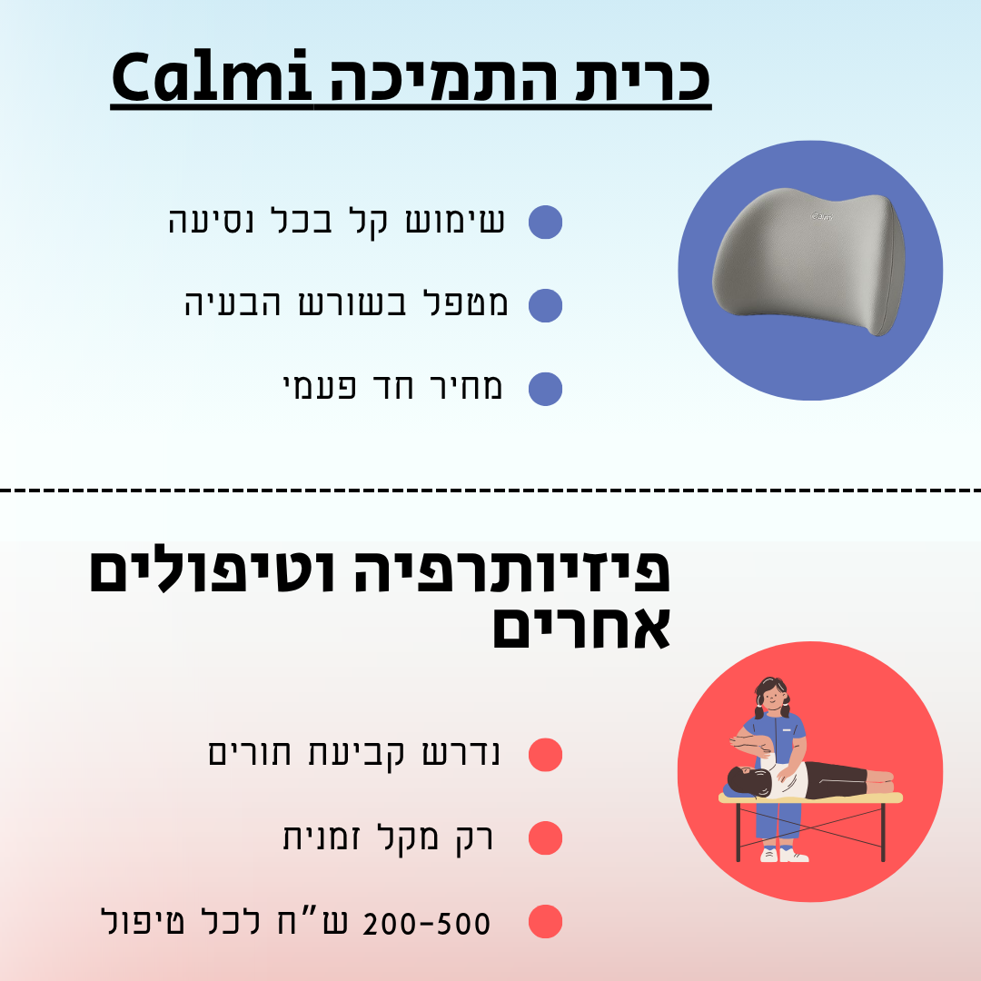 Calmi עשוי מקצף זיכרון, שיתאים את עצמו לצורה של הגב שלך, יספק תמיכה מלאה ויוריד עומסים רבים שמצטברים בגב התחתון.